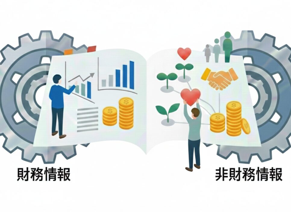 就活に例えるなら、テストの点数や資格(財務・数字)だけで判断するのではなく、その裏にある「どんな経験をして、何を学んできたか(非財務・ストーリー)」をセットにして、その人の本当の魅力(企業価値)を判断するようなもの。