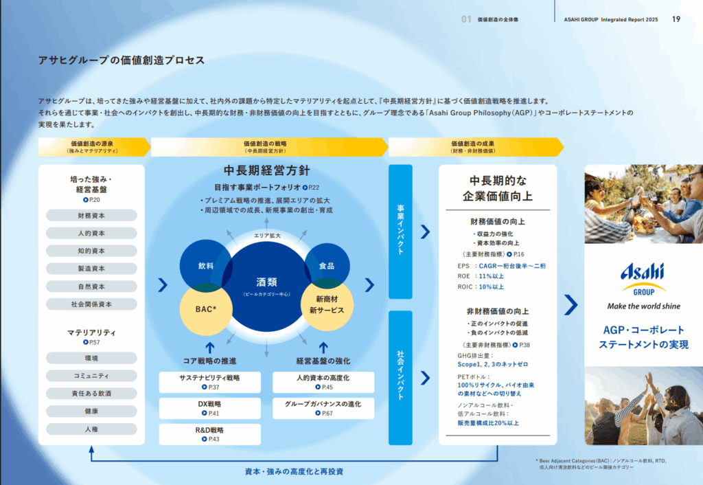 ここからは、アサヒグループが公開した「価値創造プロセス図」を、シェダルの視点で深掘りします。