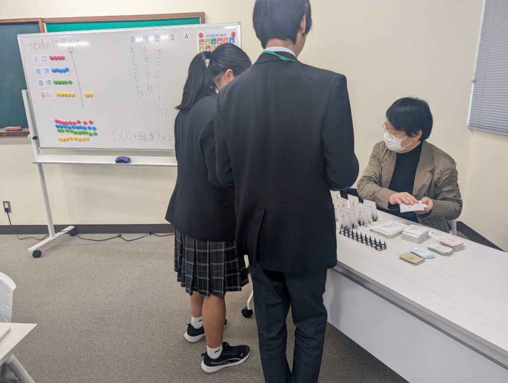 SDGsを、今まで難しくハードルの高いものと思っていましたが、カードゲームをしながら人と協力して世の中を良くしていく大切さを学ぶことができました。