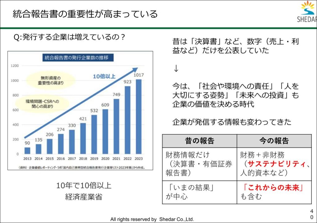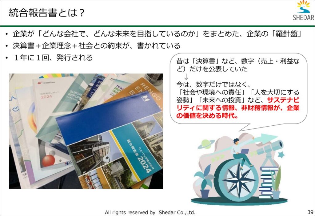 こうした「非財務情報」がぎっしりと詰まった、まさに企業の「羅針盤」であり、未来の設計図です。