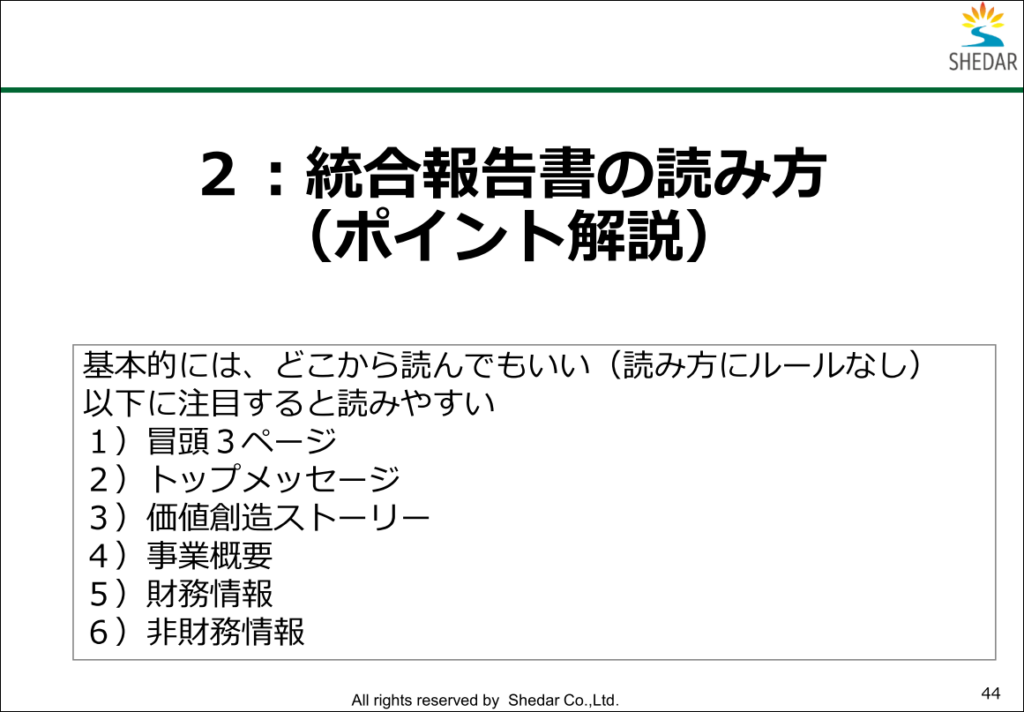 統合報告書は、決算書のように、売上や利益といった「財務情報」だけが載っているものではありません。
